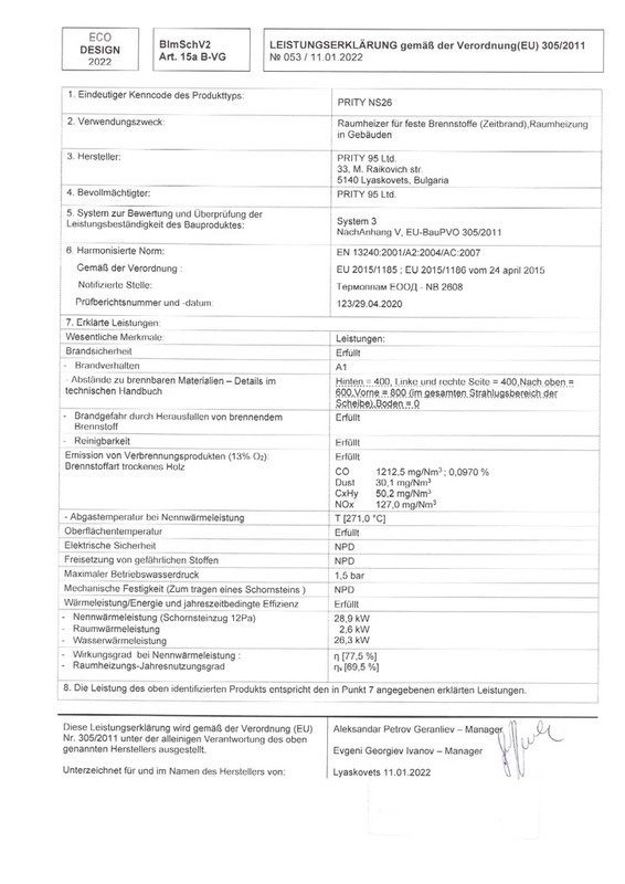 | Brennstoffe | Holz, Holzbriketts (Kohle nicht geprüft) |